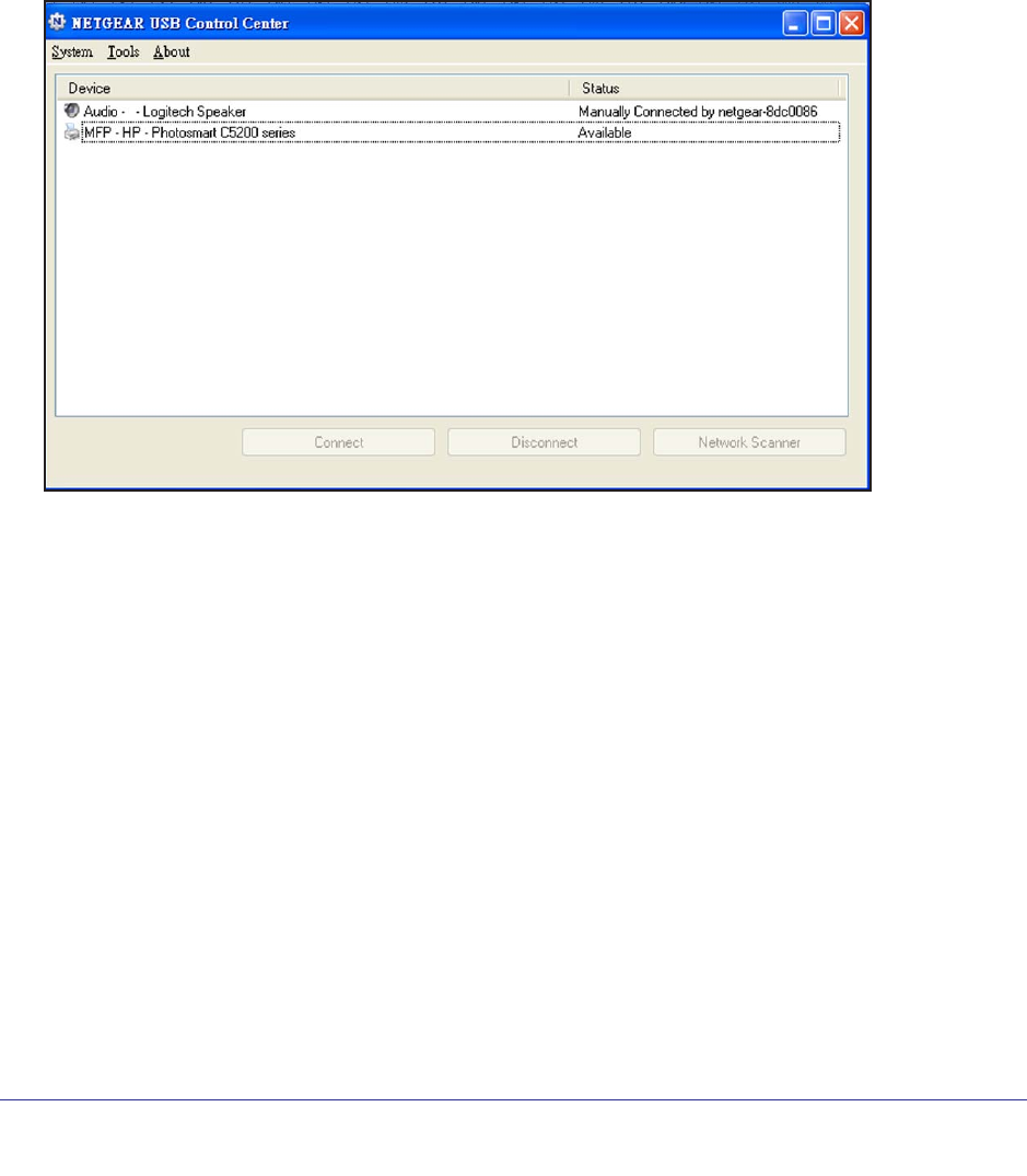 • Tools. Access the Control Center Configuration to set up your shared USB device. See