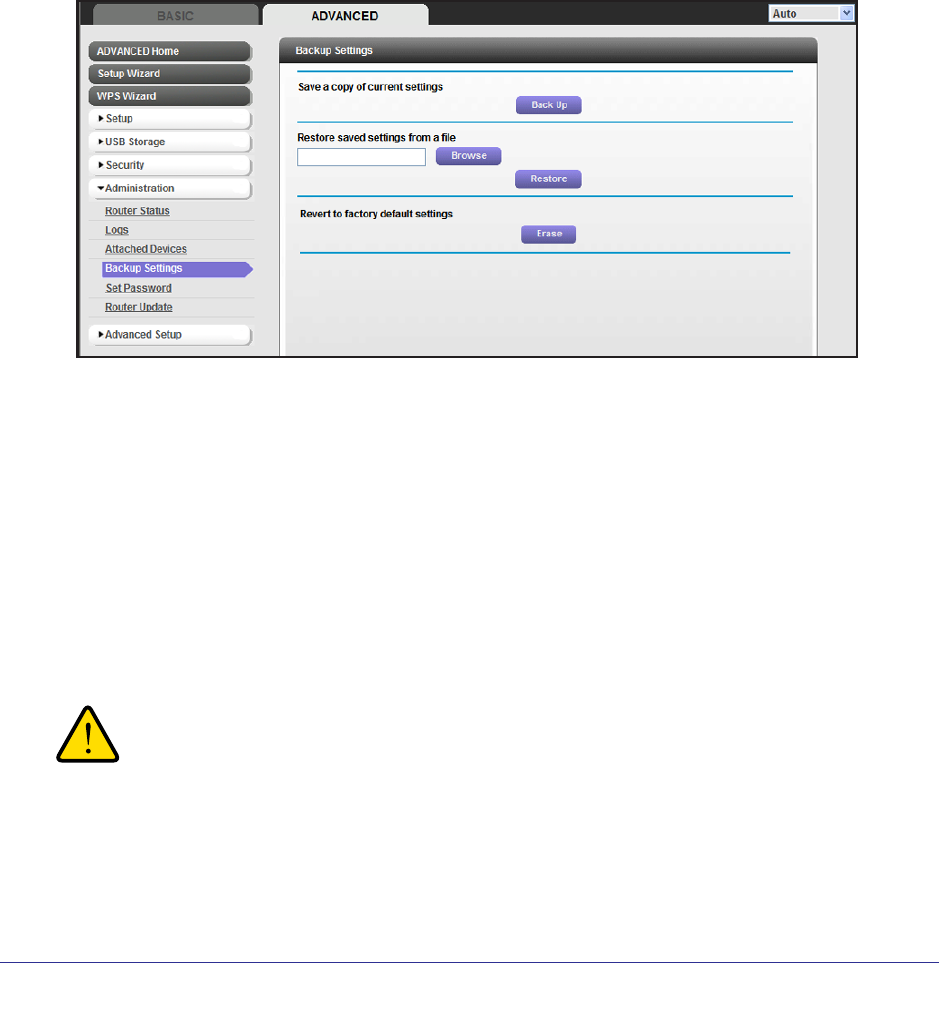 configuration file. You can back up (save) this file to your computer, restore it, or reset it to the