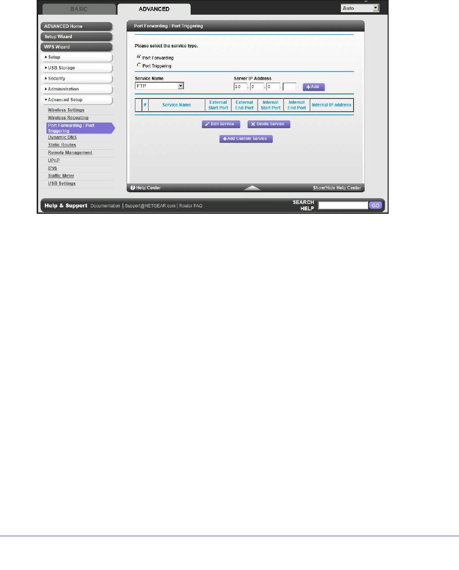 1. Select Advanced Setup > Port Forwarding/Port Triggering to display the following