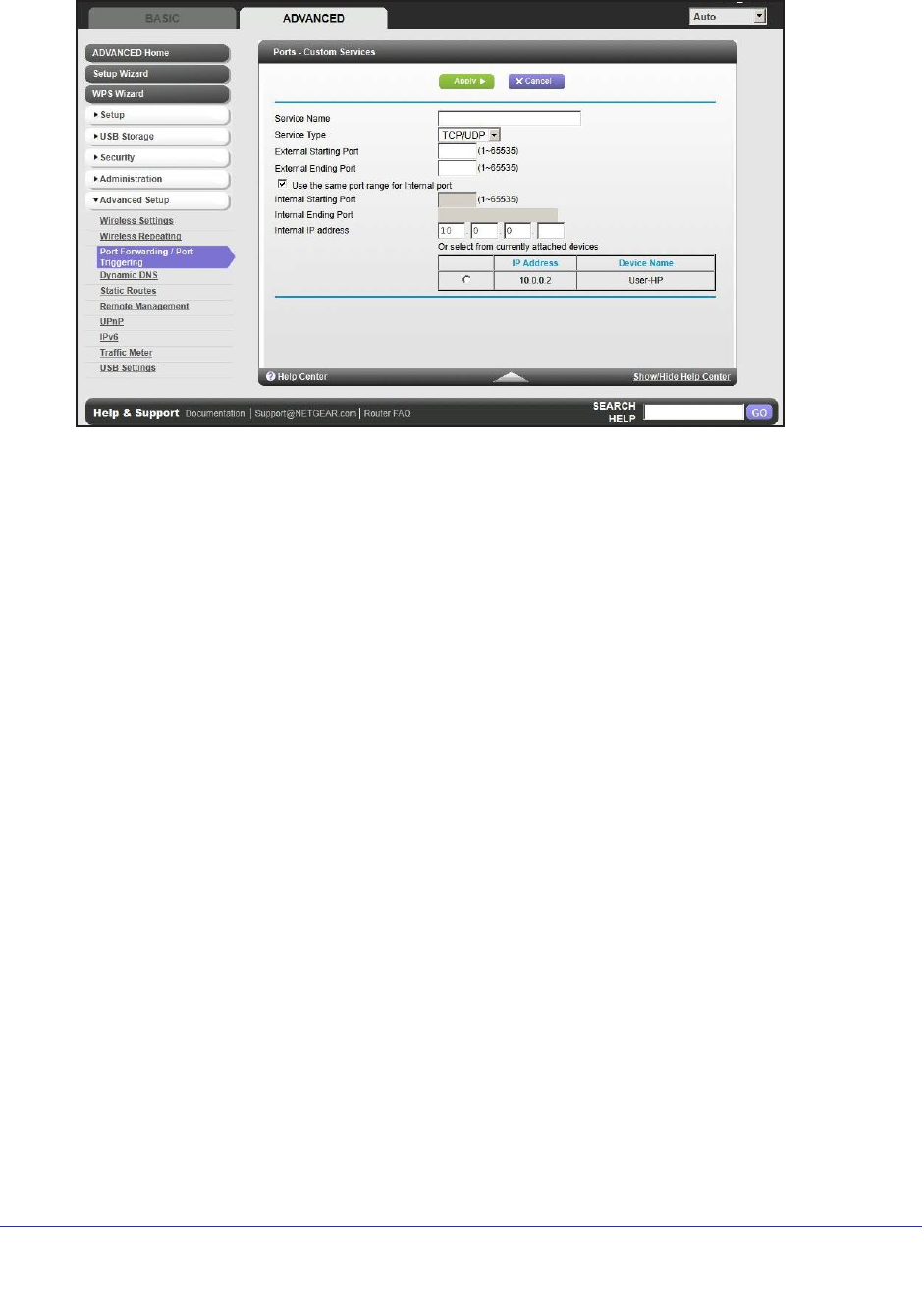 8. Click Apply. The service appears in the list in the Port Forwarding/Port