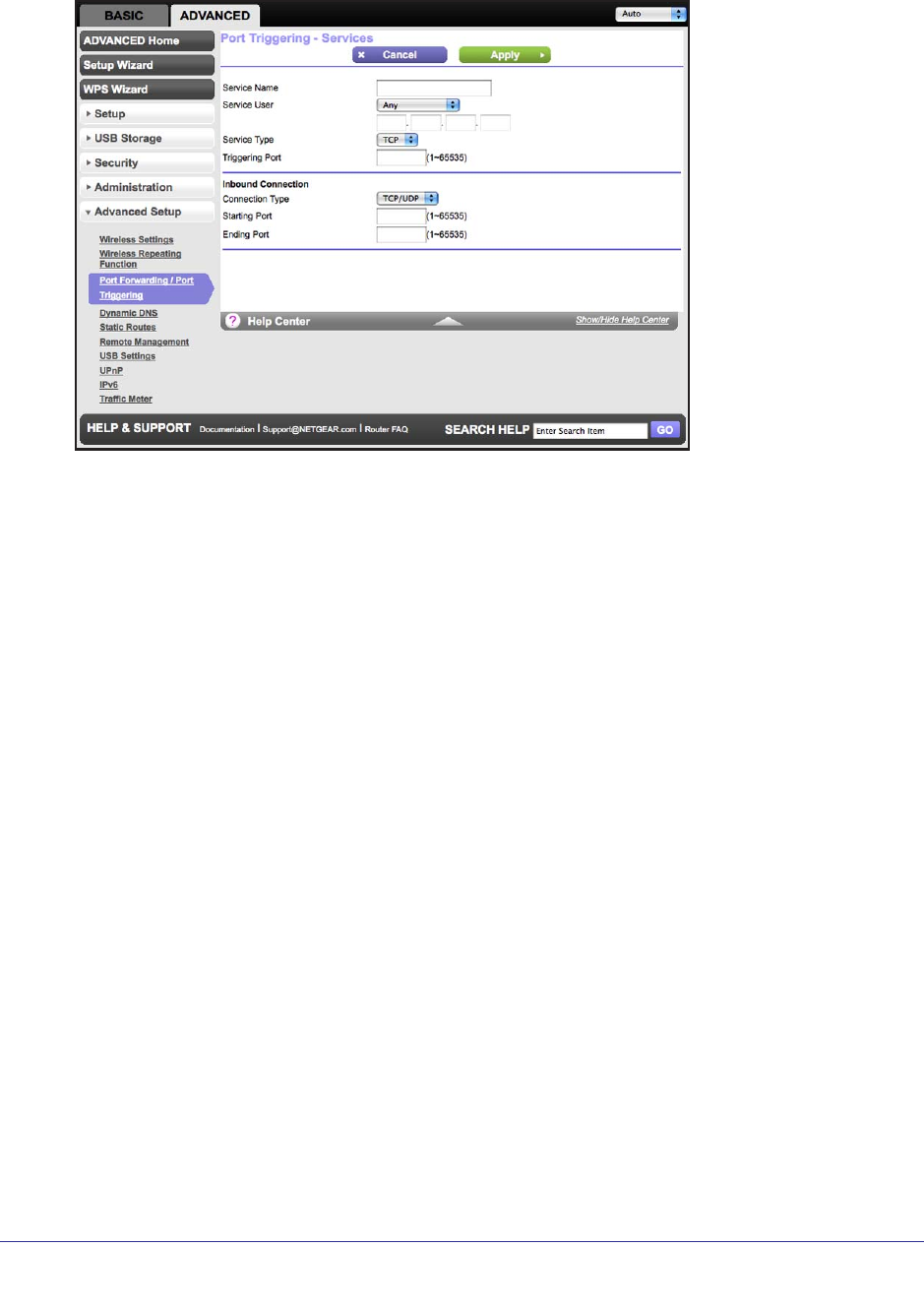 10. In the Triggering Port field, enter the number of the outbound traffic port that will cause the