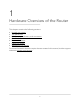 1 Hardware Overview of the Router This chapter contains the following sections: • • • • • • • Unpack your router Top panel LEDs Back panel ports,buttons, and connectors Router Label Position the Router Cable Your Router Wall-Mount Your Router For more information about the topics that are covered in this manual, visit the support website at netgear.com/support.