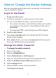 View or Change the Router Settings After you use genie to set up the router, you can log in to the router to view or change its settings. Log In to the Router To log in to the router: 1. Connect a computer or wireless device to the router. You can use an Ethernet cable or connect with WiFi. • For a wired connection, use an Ethernet cable (not included) to connect your computer to a black Ethernet LAN port on your router. • To connect with WiFi, select and join your WiFi network. 2.