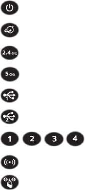 The LEDs on the top of the router light to indicate router activity: