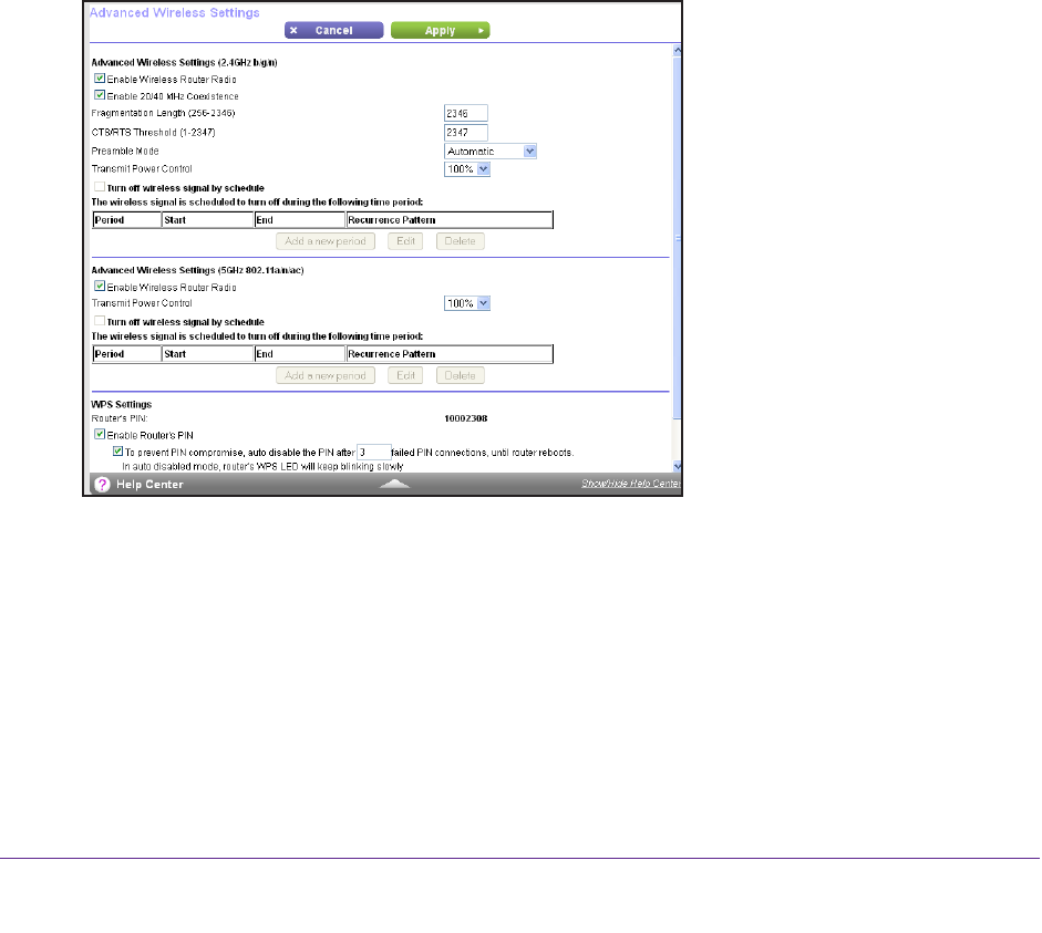 5. In the 2.4 GHz and 5 GHz sections of the screen, select or clear the Enable Wireless