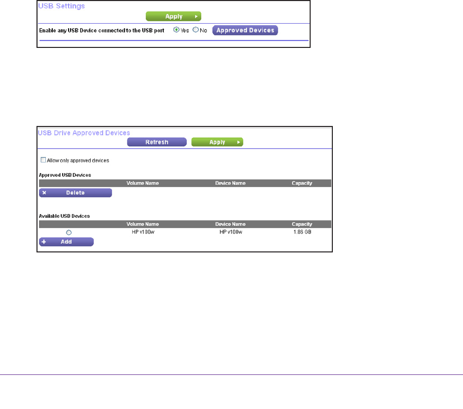 For more security, you can set up the router to share only USB devices that you approve.