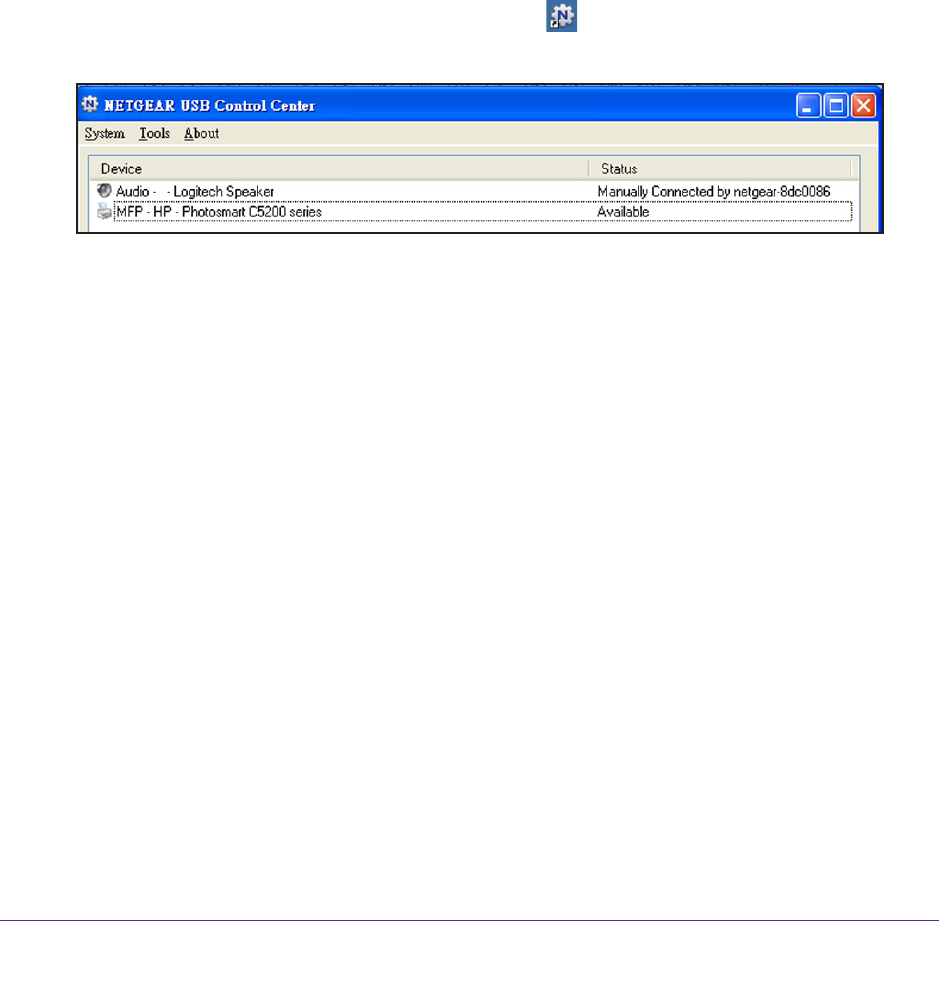 The NETGEAR USB Control Center automatically connects your computer to the USB