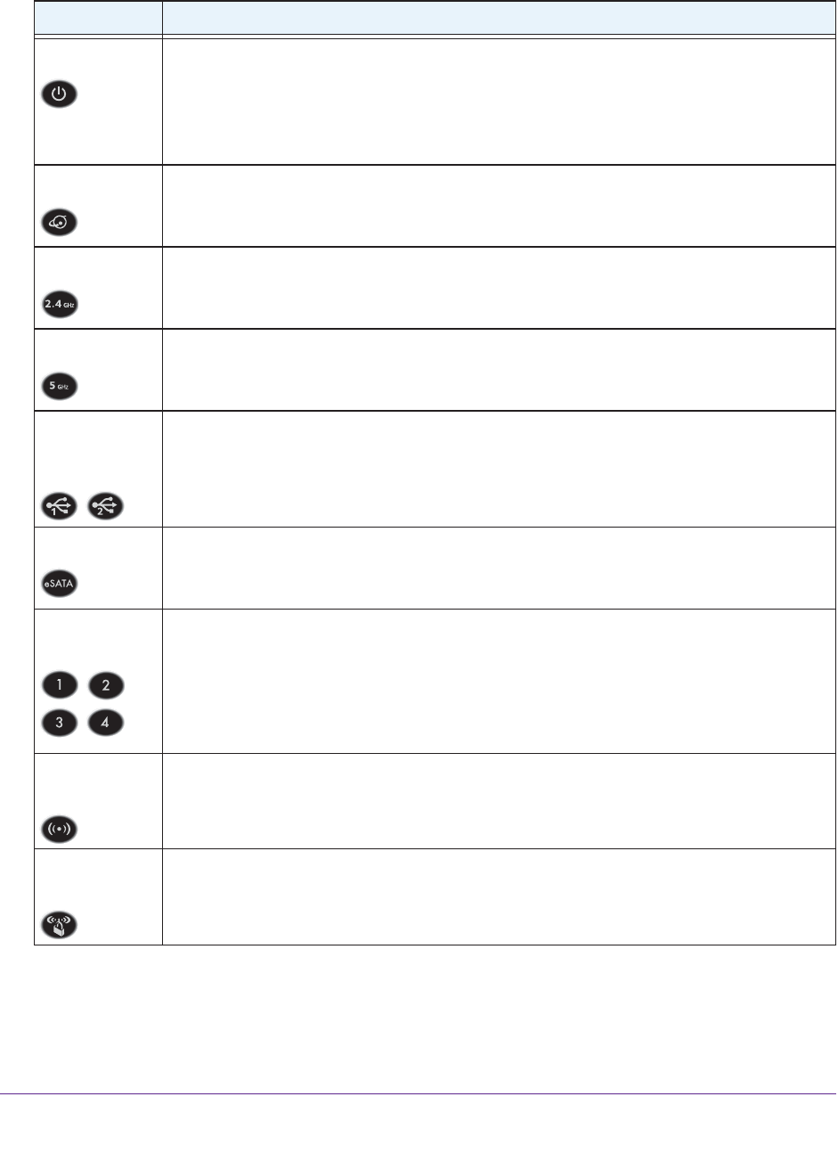 Pressing this button for two seconds turns the 2.4 GHz and 5 GHz WiFi radios on and off.
