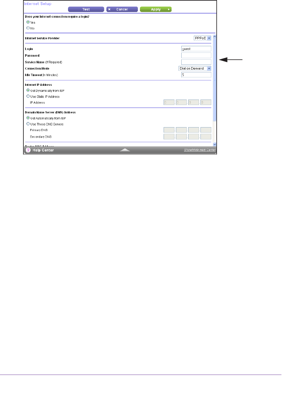 5. In the Does your Internet connection require a login? setting, select the Yes radio button.
