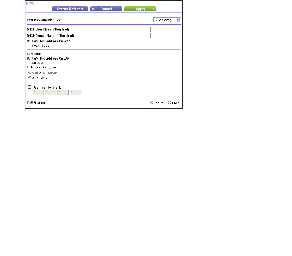 ’s IPv6 Address on LAN. This field shows the IPv6 address that is acquired