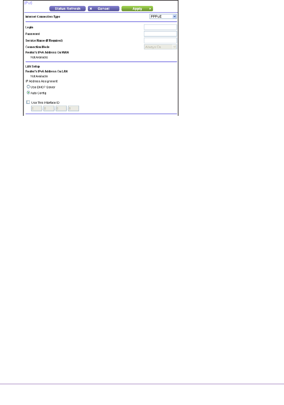 ’s IPv6 Address on LAN. This field shows the IPv6 address that is acquired