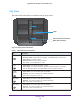 Nighthawk X6 AC3000 Tri-Band WiFi Router Table 1. LED and button descriptions (continued) LED Description USB 3.0 port • • • Solid white. A USB device is connected and is ready. Blinking. A USB device is plugged in and is trying to connect. Off. No USB device is connected, or someone clicked the Safely Remove Hardware button and it is now safe to remove the attached USB device. • • Solid white. The guest WiFi radio is operating. Off. The guest WiFi radio is off.