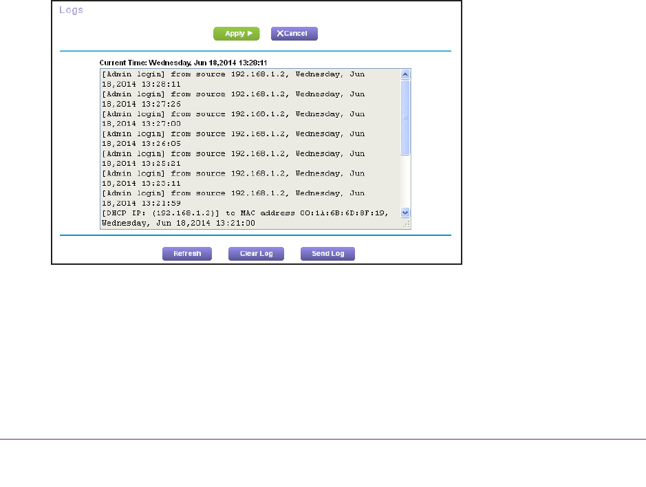 other router actions. Up to 256 entries are stored in the log. Log entries display only when