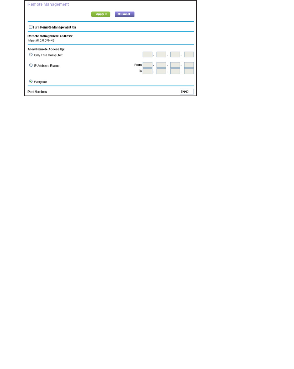 Range. Allow access from a range of IP addresses on the Internet. Enter