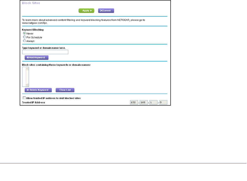 6. In the keyword field, enter a keyword or domain that you want to block.