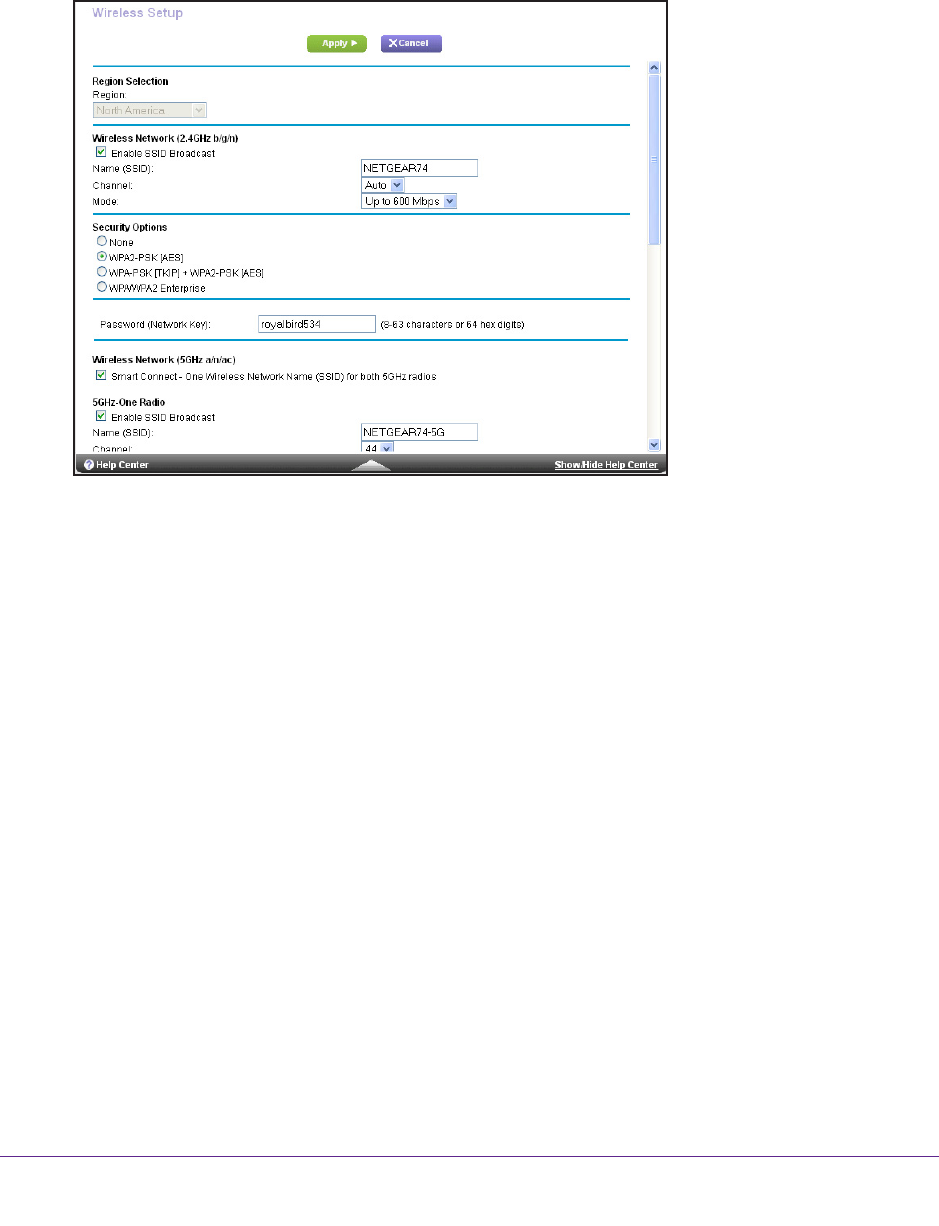 5. Select or clear the Smart Connect – One Wireless Network Name (SSID) for both 5 GHz