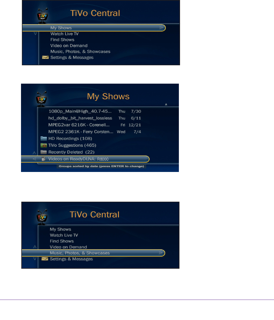 TiVo, select TiVo Central > Music, Photos, & Showcases.