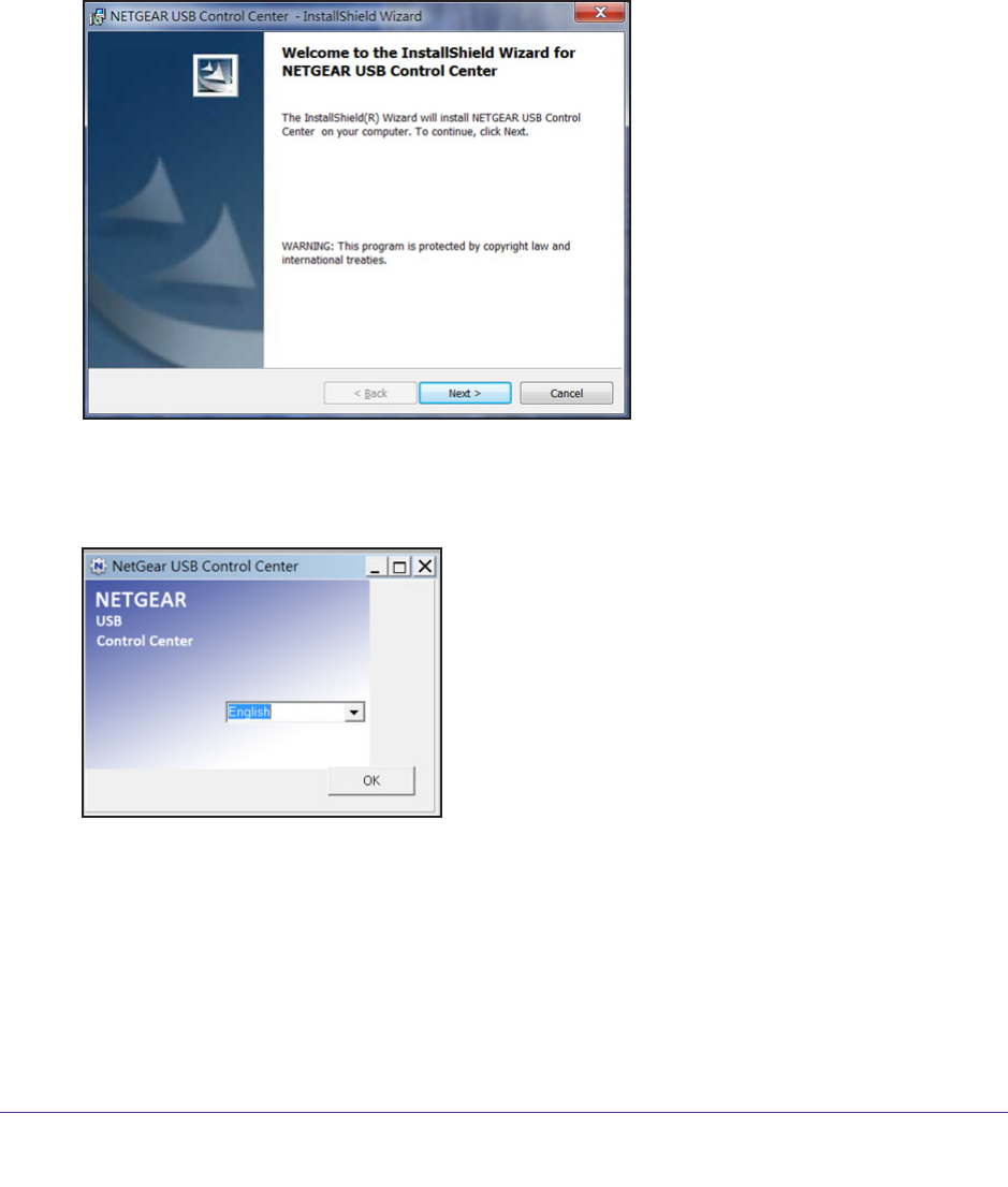 2. Follow the wizard instructions to install NETGEAR USB Control Center.