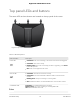 Nighthawk AX2400 WiFi 6 Router Table 1. LED descriptions (Continued) LED and Button Description 5 GHz WiFi LED Solid white: The 5 GHz WiFi radio is operating. Blinking white: The router is sending or receiving WiFi traffic. Off: The 5 GHz WiFi radio is off. Ethernet LEDs for ports 1–4 The LED color indicates the speed: white for Gigabit Ethernet connections and amber for 100 Mbps or 10 Mbps Ethernet connections. • Solid white: The router detected a 1 Gbps link with a powered-on device.