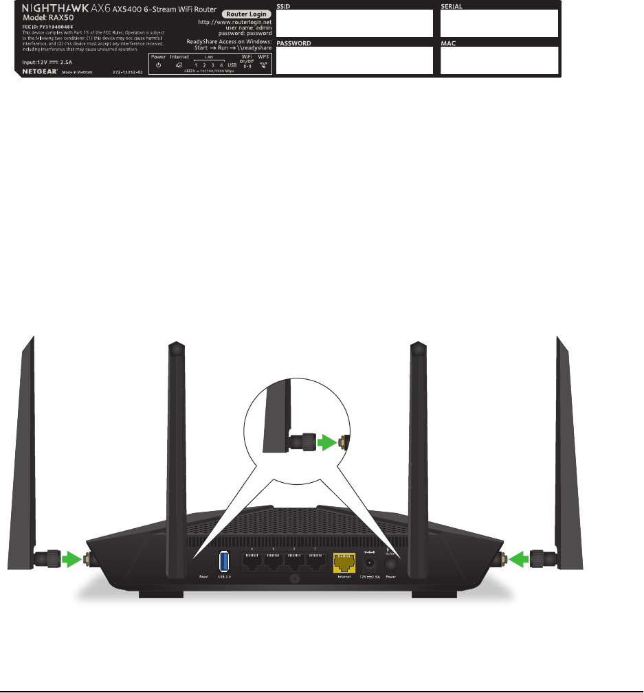 Note: Make sure to match the labels on the antennas with the labels on the router. The
