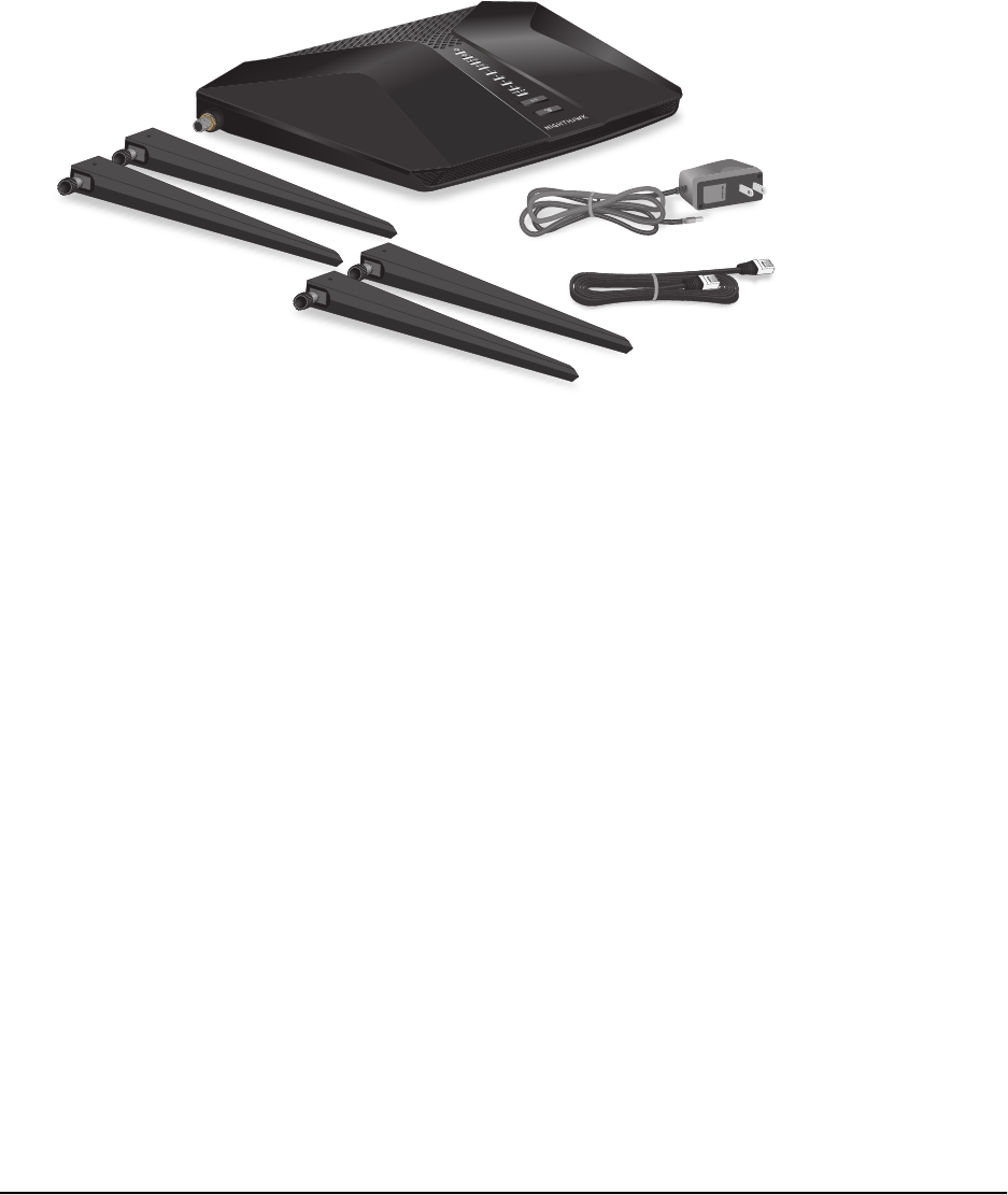Your package contains the router, the power adapter, four antennas, and an Ethernet