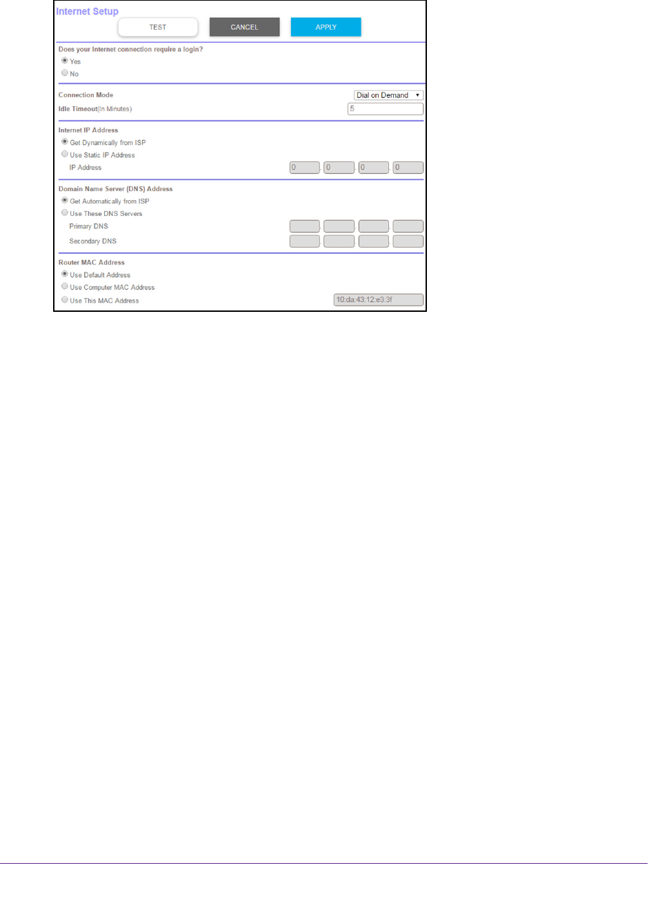 On, Dial on Demand, or Manually