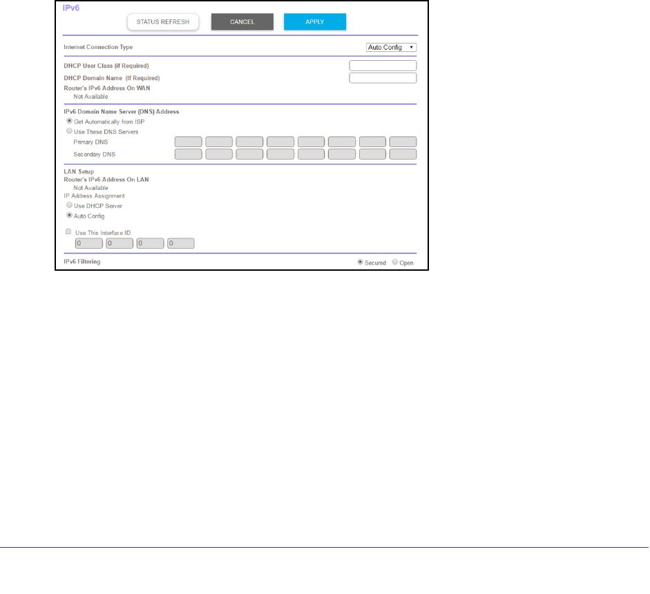 ’s IPv6 Address on LAN. This field shows the IPv6 address that is acquired