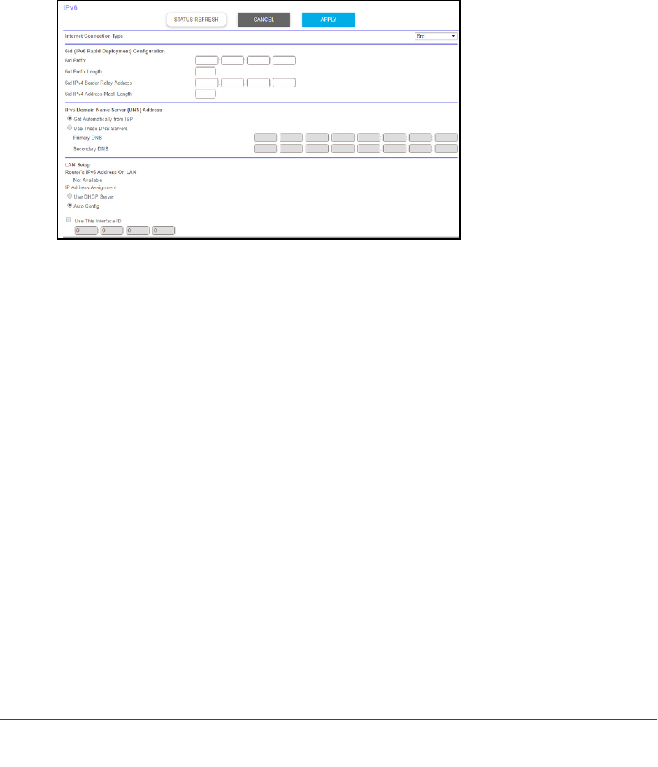 • 6rd (IPv6 Rapid Development) Configuration. The router detects the service