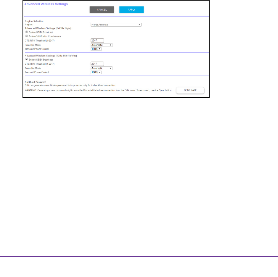 about generating a new backhaul password, see Generate a New