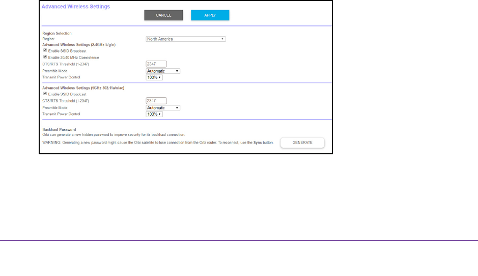router and the satellite. You can generate a new backhaul password. After you generate a