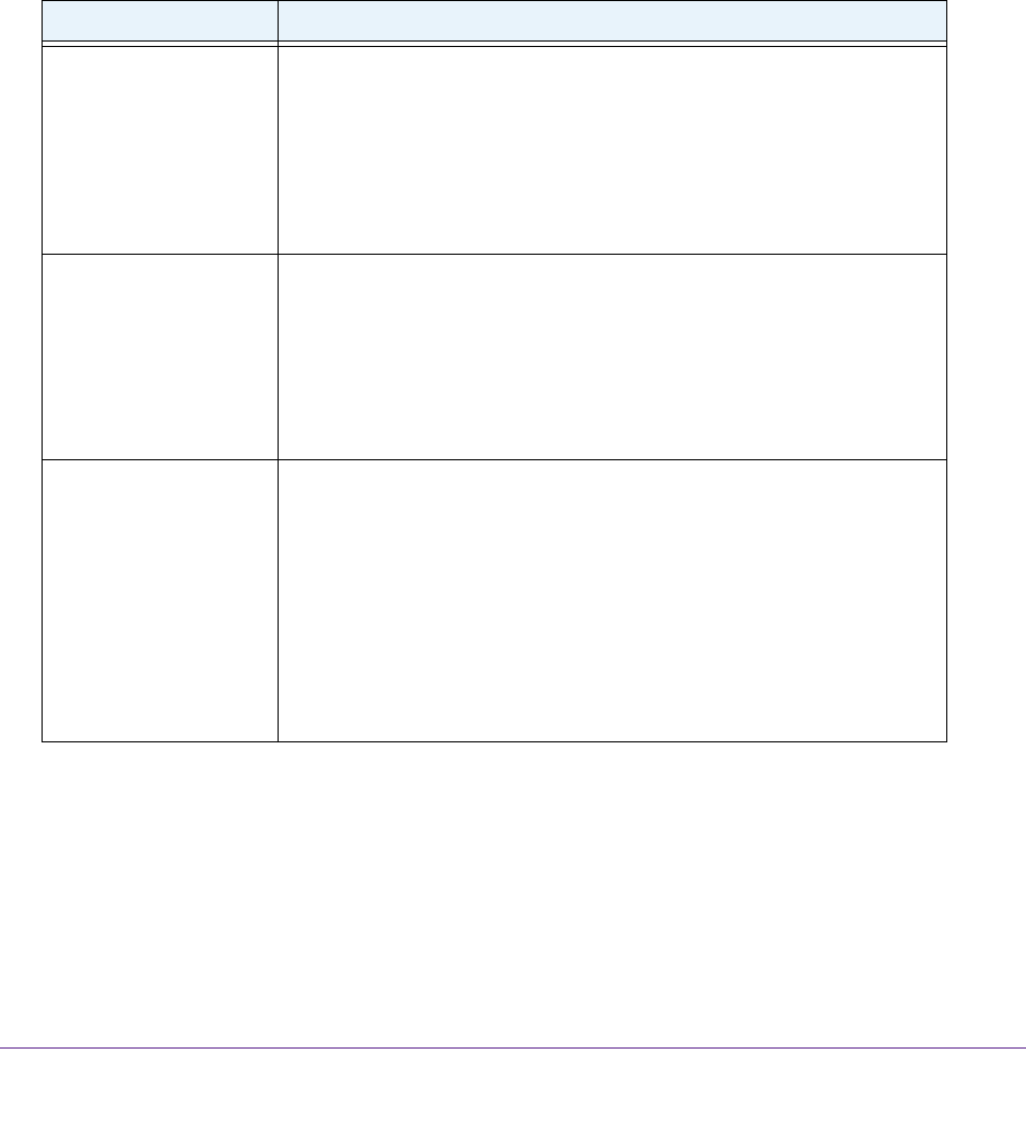 The following table describes the LED behavior for an Orbi router and Orbi satellite that are