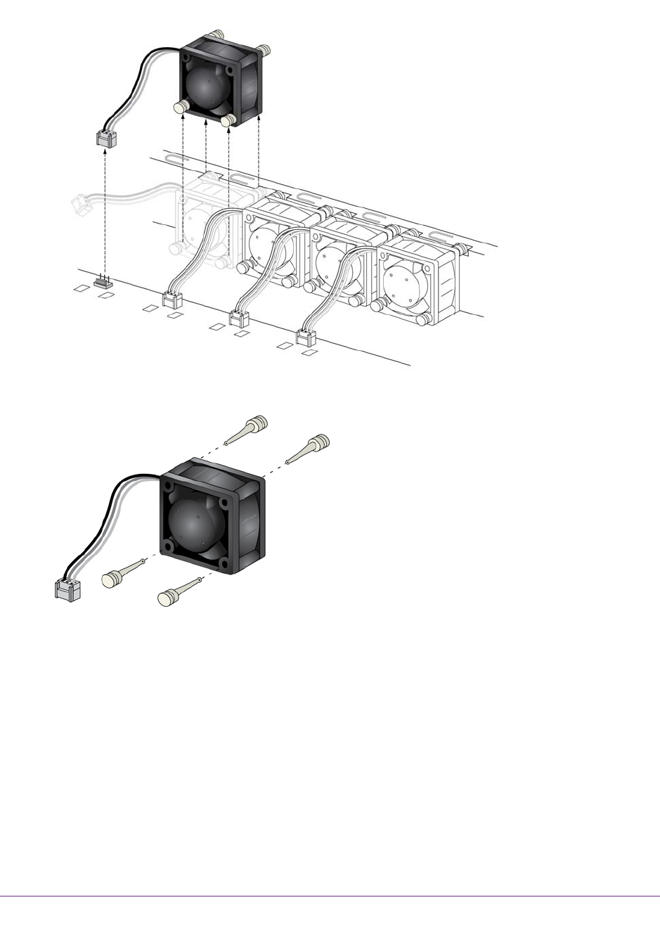 5. Insert the four pegs into holes in the replacement fan.