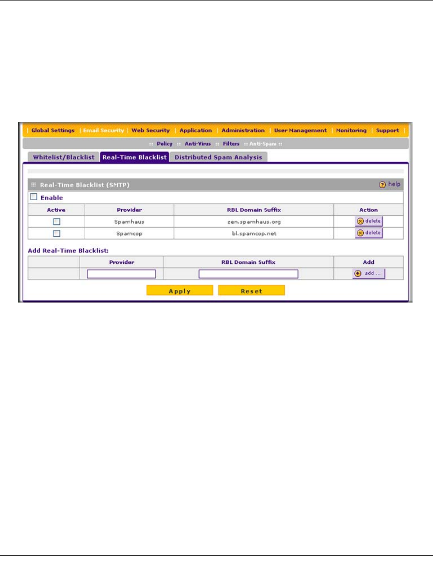 3. Select the Enable checkbox enable the Real-Time Blacklist function.