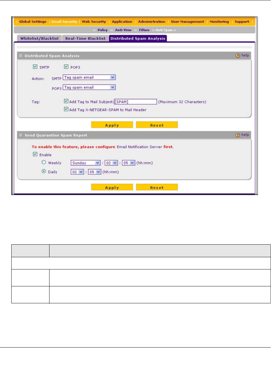 SMTP Select the SMTP checkbox to enable Distributed Spam Analysis for the SMTP protocol.