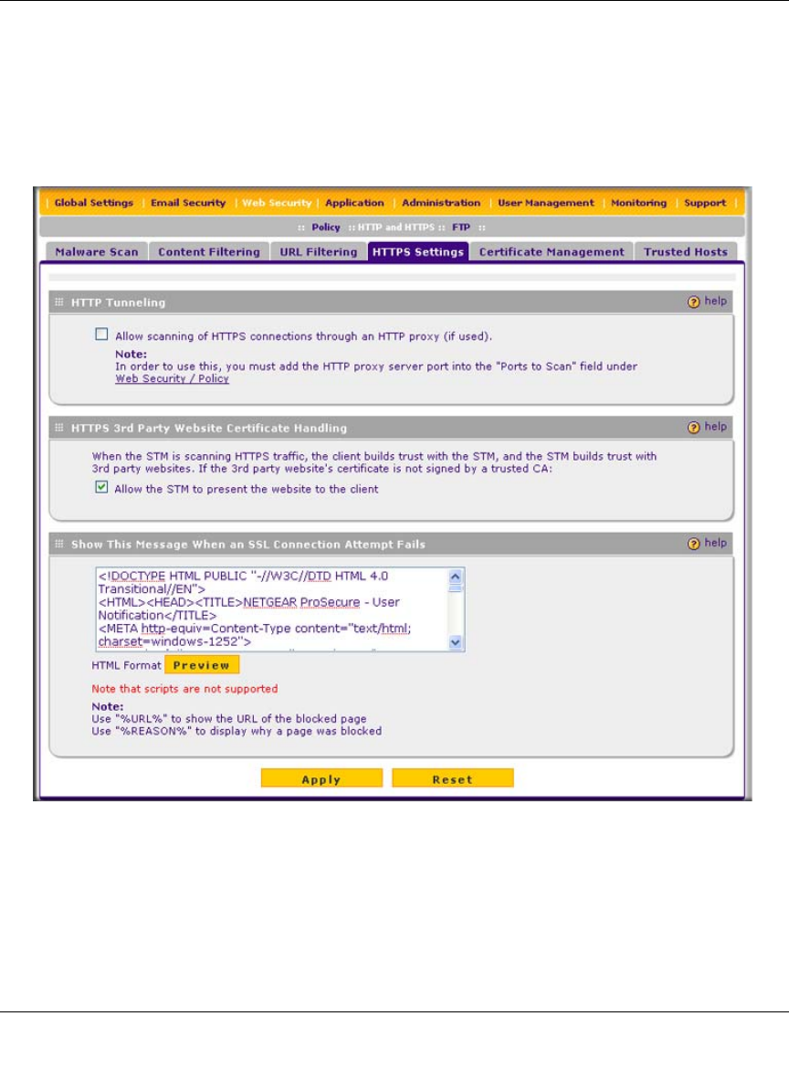 1. Select Web Security > HTTP/HTTPS from the menu. The HTTP/HTTPS submenu tabs