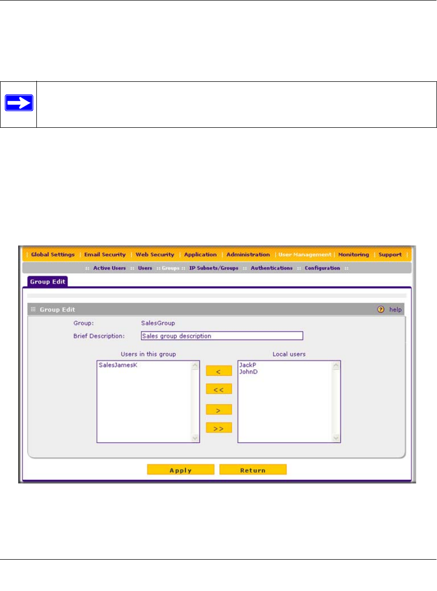 1. Select User Management > Groups from the menu. The Groups screen displays (see