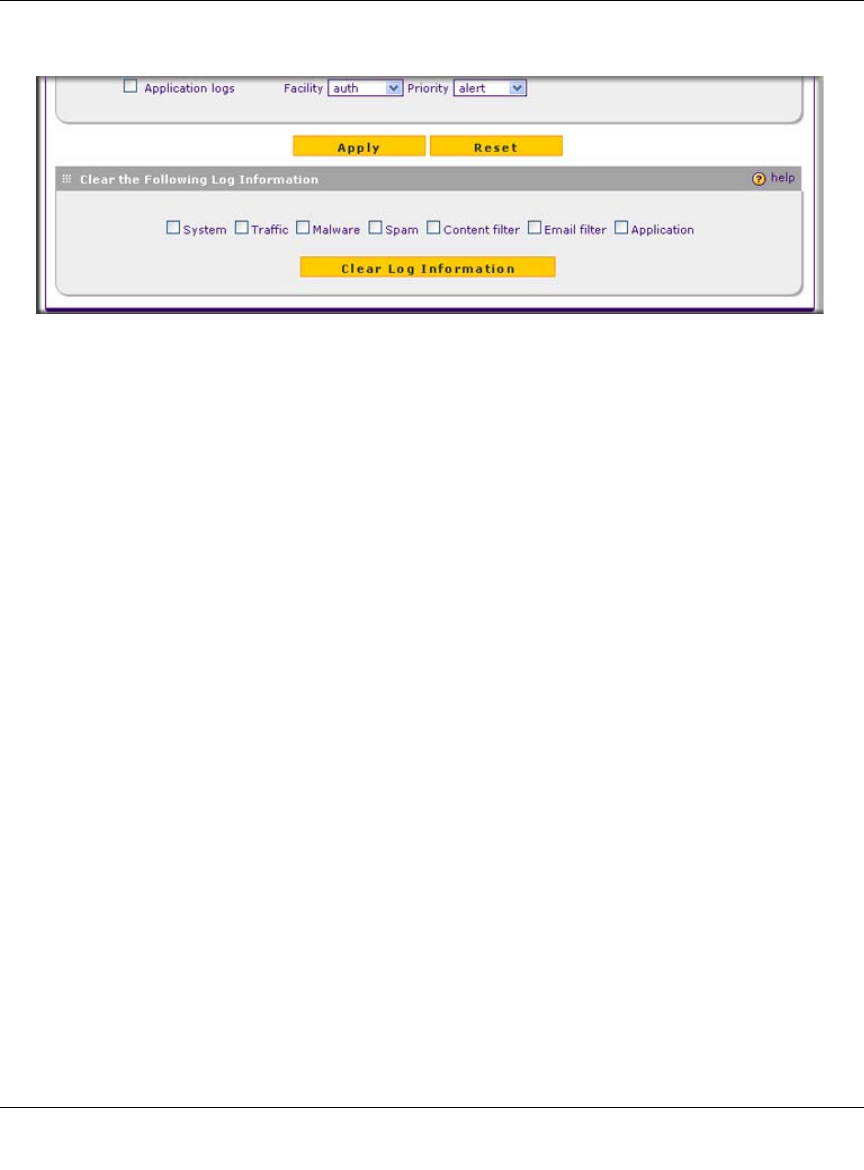 • Content filter. The logs with intercepted Web sites, URLs, and FTP sites are cleared.