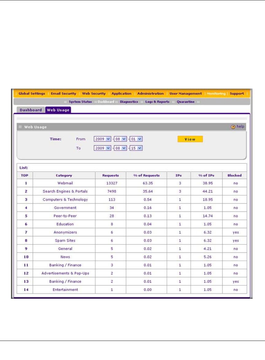The Web Usage screen shows you how the STM’s Web resources are being used. You can see, for