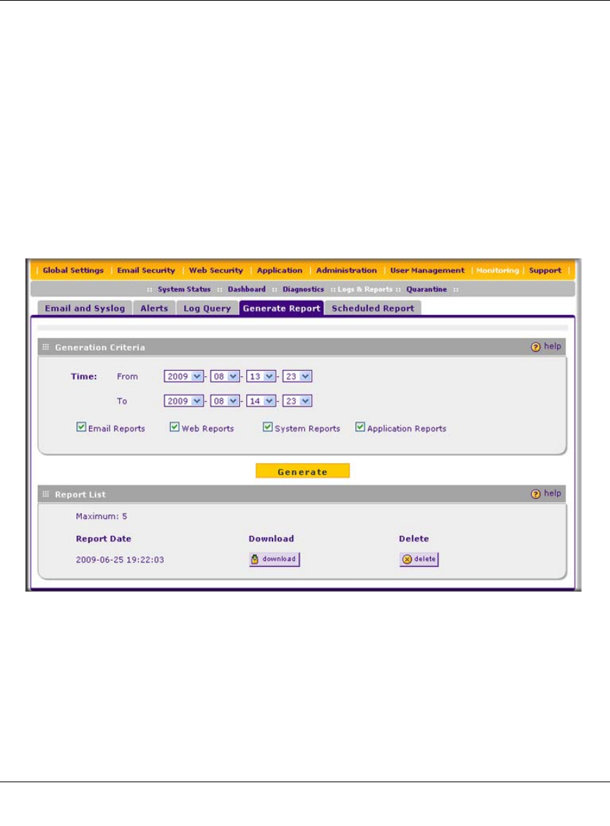 2. Click the Generate Report submenu tab. The Generate Report screen displays.