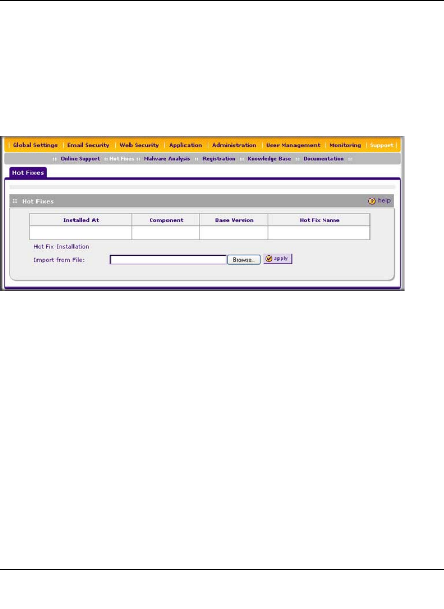 4. Select Support > Hot Fixes from the menu The Hot Fixes screen displays (see Figure 7-3).