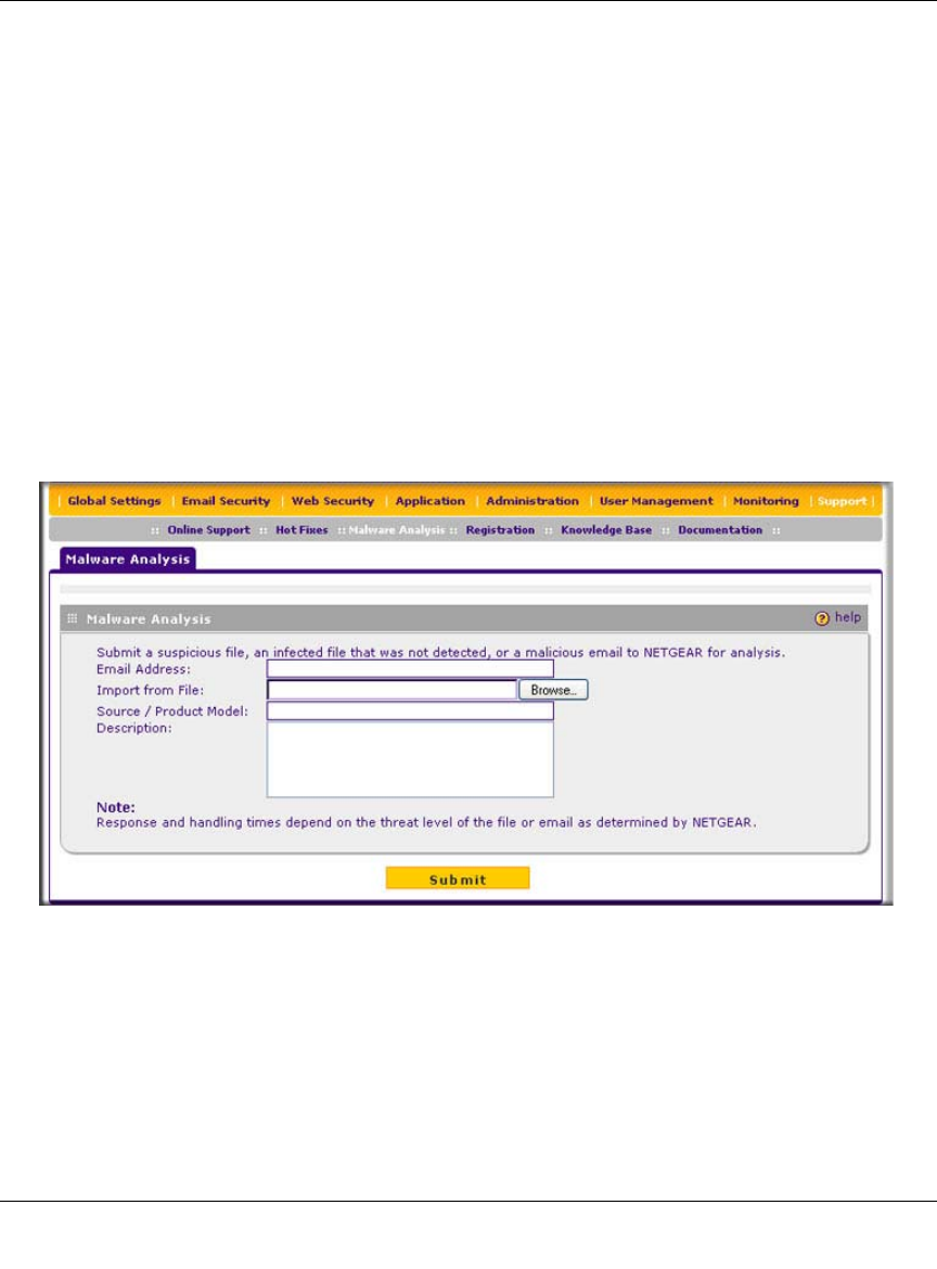 1. Select Support > Malware Analysis from the menu The Online Support screen displays.
