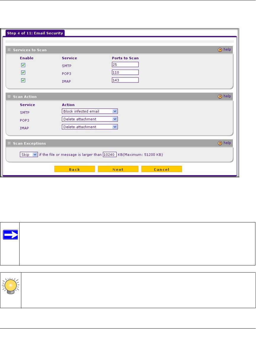 Security > Anti-Virus. The Email Anti-Virus screen also lets you specify