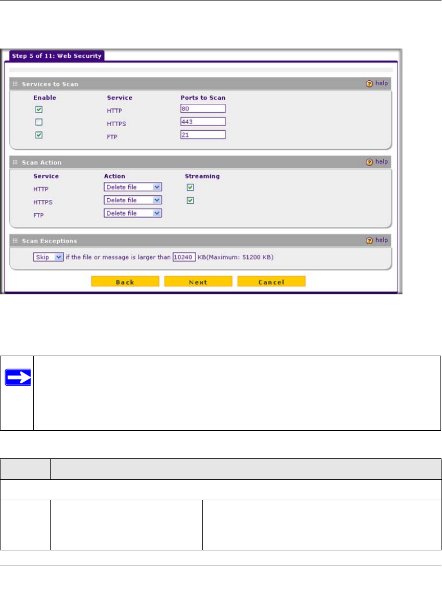 Table 2-4. Setup Wizard Step 5: Web Security Settings