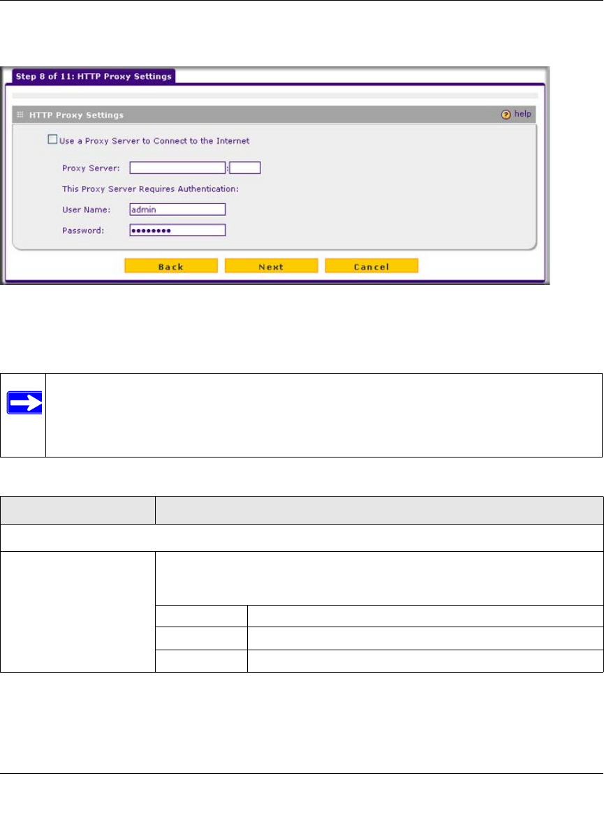 Table 2-7. Setup Wizard Step 8: HTTP Proxy Settings