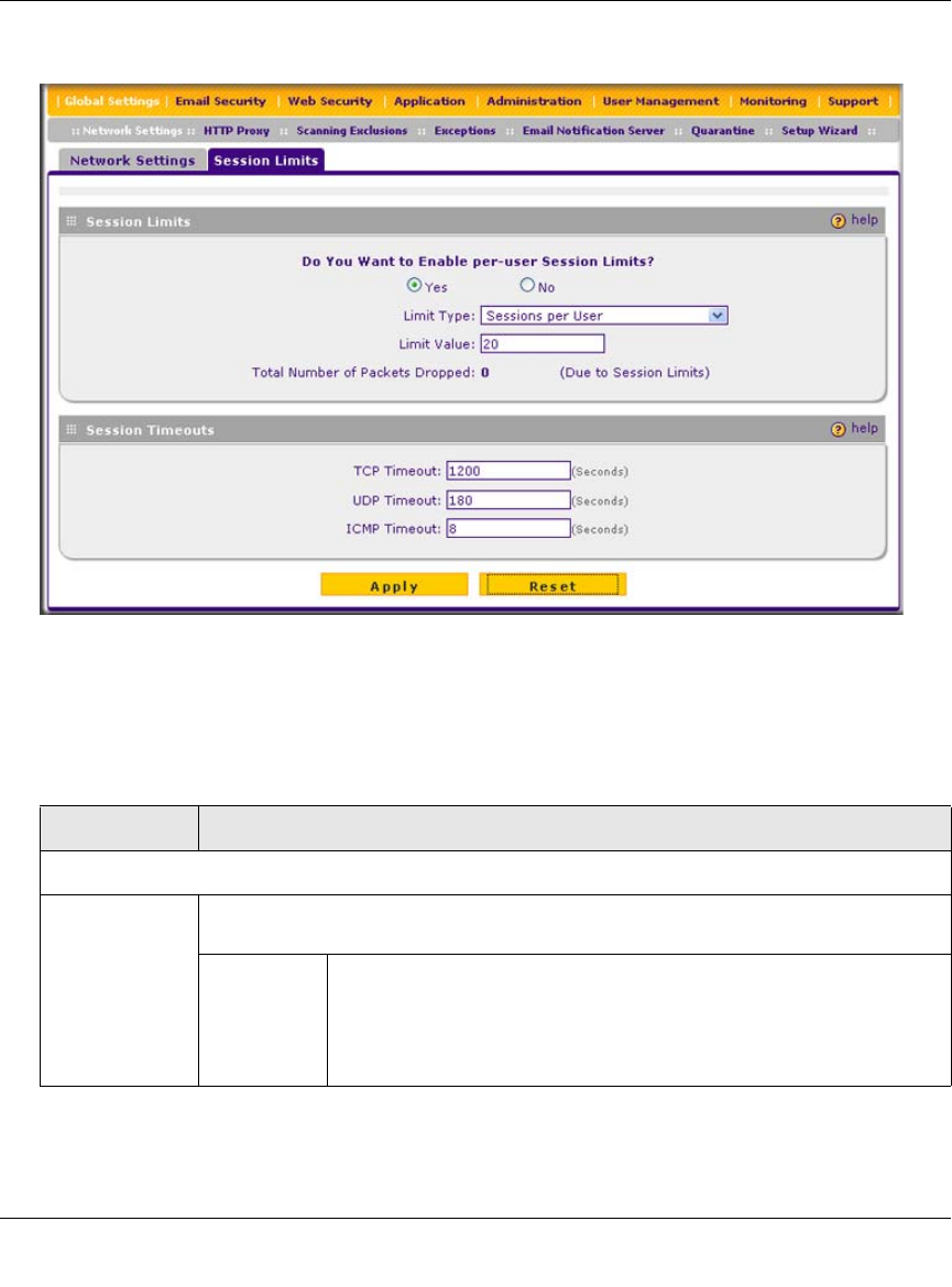 2. Click the Session Limits submenu tab. The Session Limits screen displays.