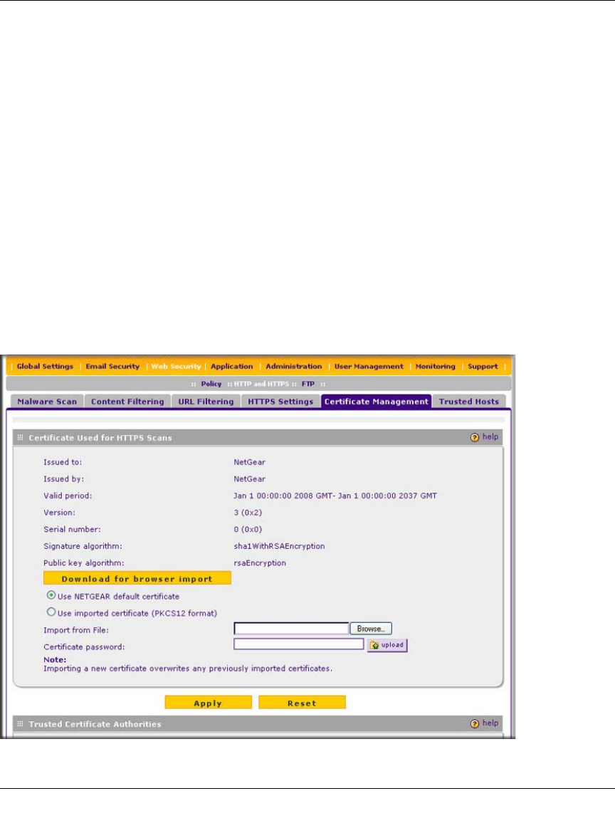 To display the Certificate Management screen, select Web Security> Certificate Management
