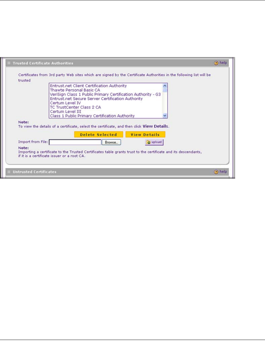 screen displays. Figure 3-16 shows only the Trusted Certificate Authorities section of the screen.