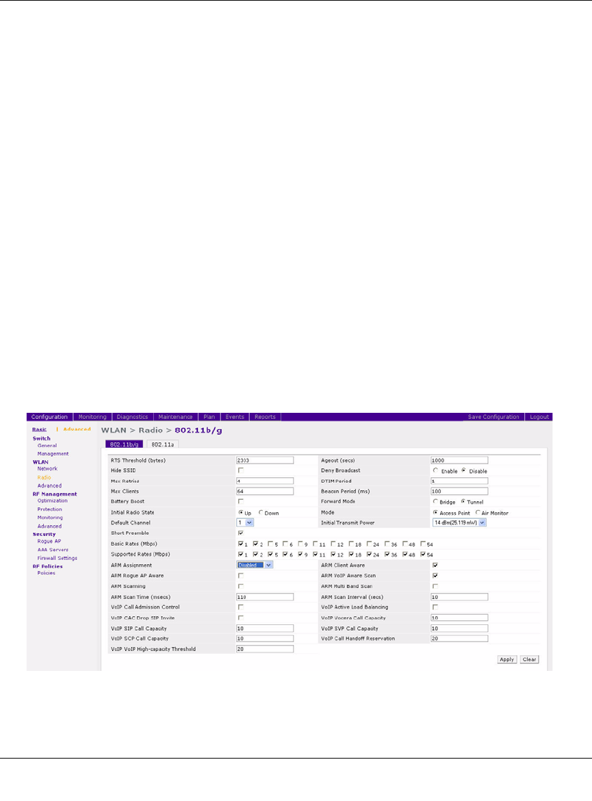 • To enable IRM on the 802.11b/g radio, navigate to the Configuration > Advanced >