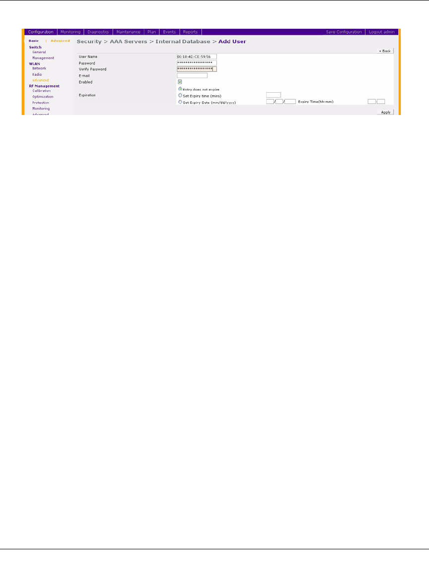 1. Navigate to the Security > AAA Servers > Internal Database page.