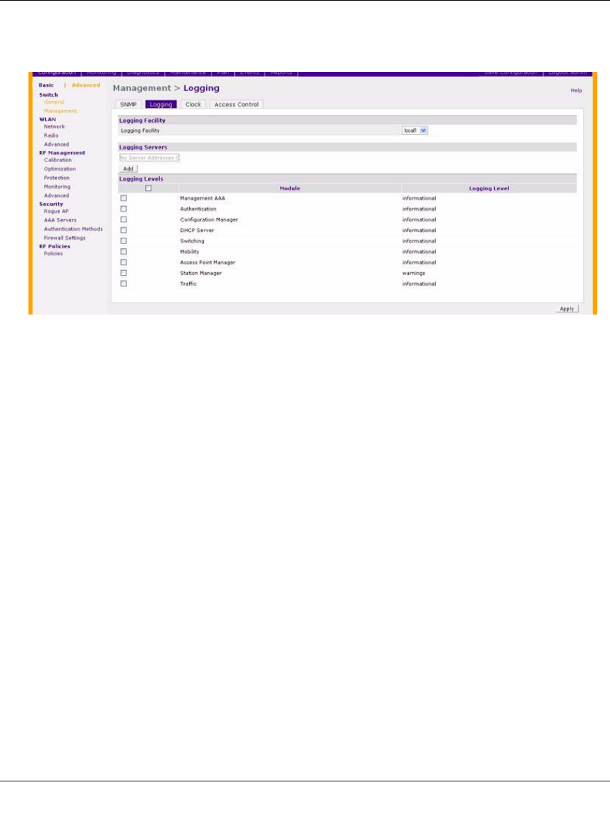 1. Navigate to the Configuration > Advanced > Switch > Management > Logging page on the